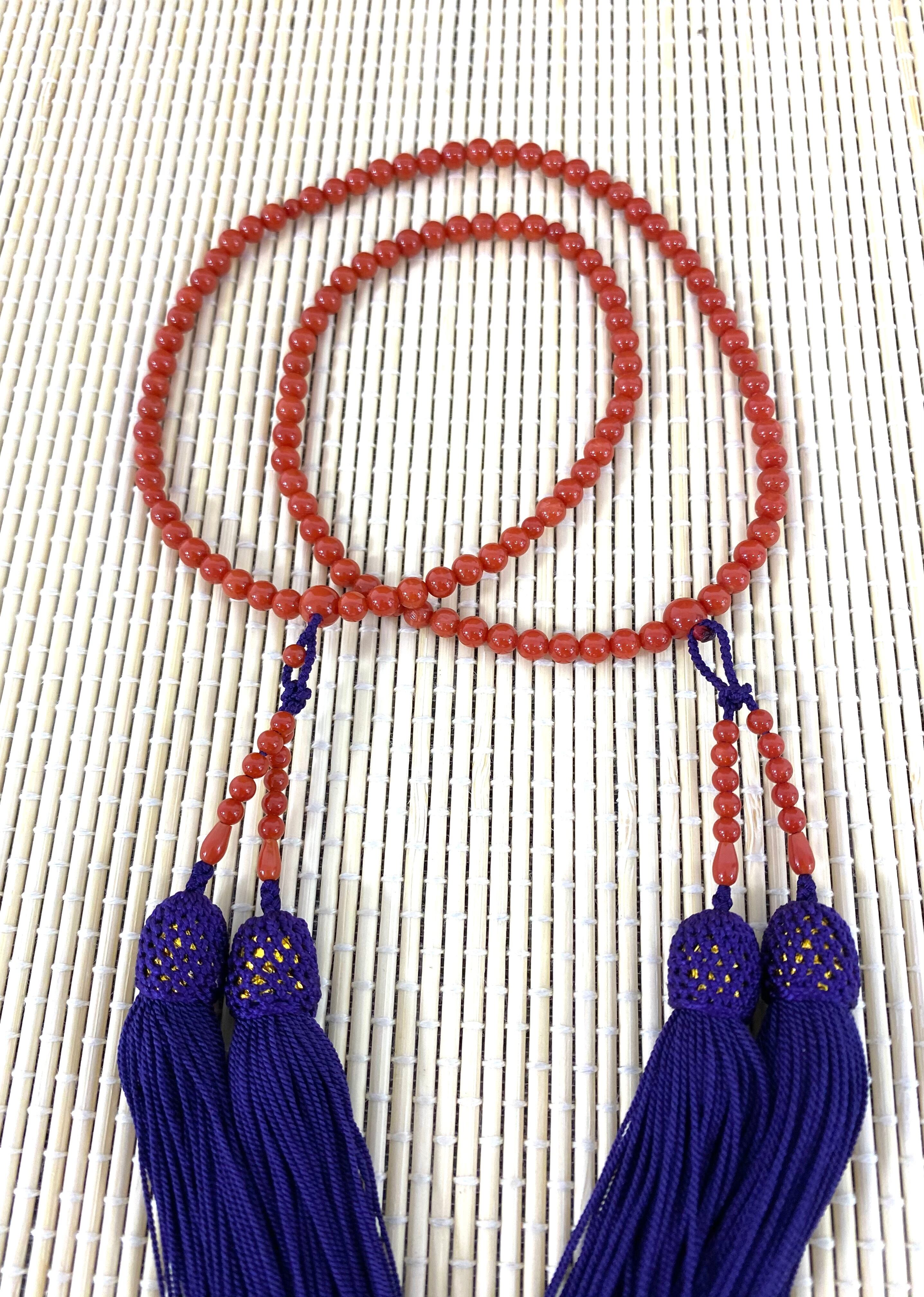サンゴは深海で長い年月をかけて成育するため、海と地球の大いなるエネルギーを持っていると言われております。また、珊瑚は海の塩分で長いあいだ清められるため魔除け、邪気祓いとして数珠の中でもサンゴの数珠だけが代々受け継いでいくことができます。