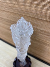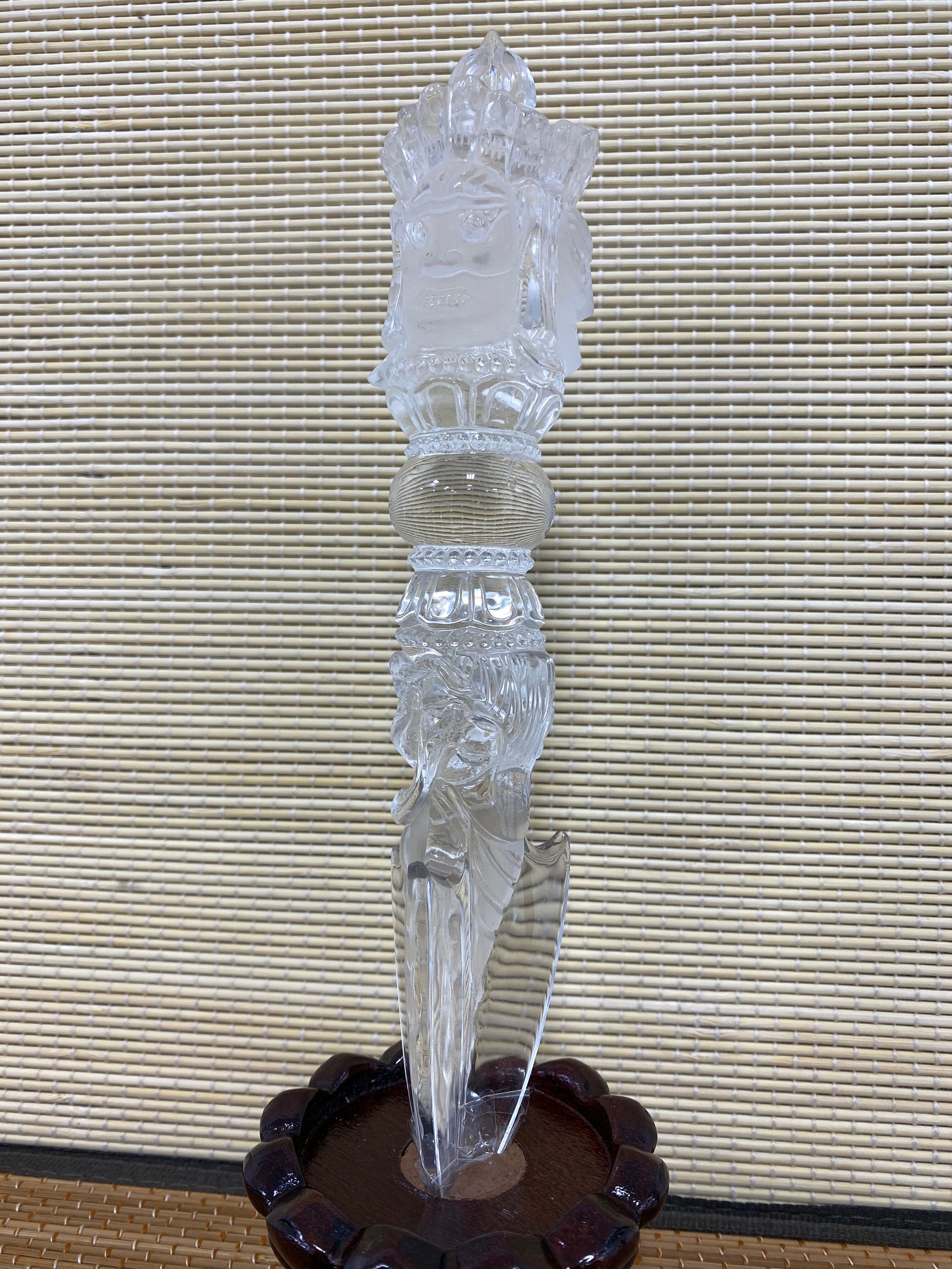 金剛杵(こんごうしょ)と呼ばれる神話上の宝具。その中でも柄に鬼の彫刻が施されている「鬼面金剛杵」はどんな物でも打ち砕くため、煩悩や障壁を打ち払ってくれると言われています。その鬼面金剛杵を水晶で形作っていることで強力な浄化作用や魔除け厄除けは勿論のこと、自身の成長を促すことで高い開運効果を得られると言われています。